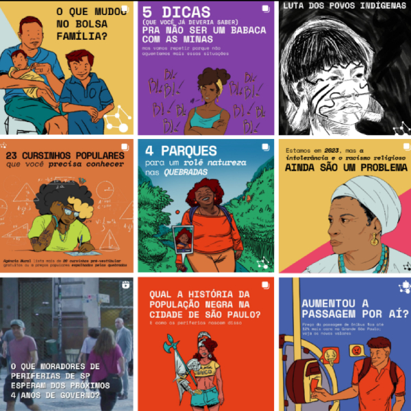 Agência Mural est un collectif de communication dédié à la couverture de l’actualité et des événements dans les quartiers périphériques de São Paulo. Le projet a débuté sous la forme d’un blog en 2010 et compte aujourd’hui environ 50 correspondants locaux, ou « muralistes », tous issus des quartiers périphériques. « Chaque correspondant, expliquent les autrices, est chargé de couvrir l’actualité et les événements d’une région ou d’une ville donnée avec laquelle il a une plus grande proximité ».